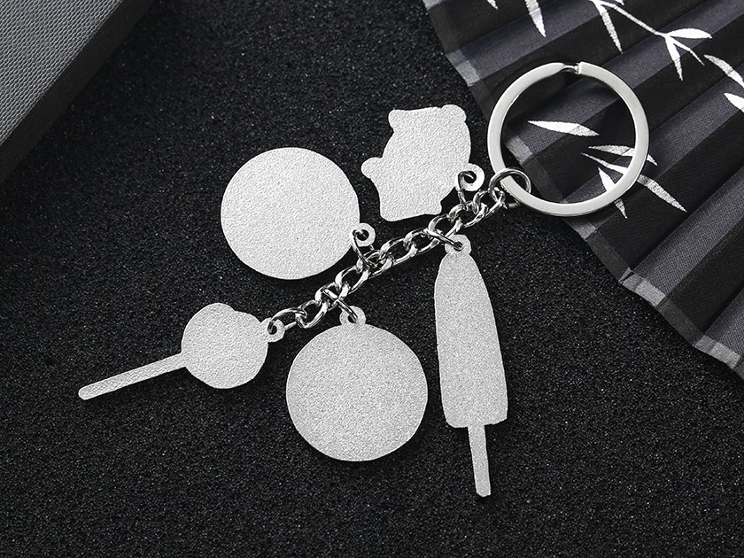 【制作工藝】:沖壓 【上色工藝】:烤漆 【電鍍顏色】:銀色 【背面工藝】:砂底 【產(chǎn)品配件】:平圈+鏈條